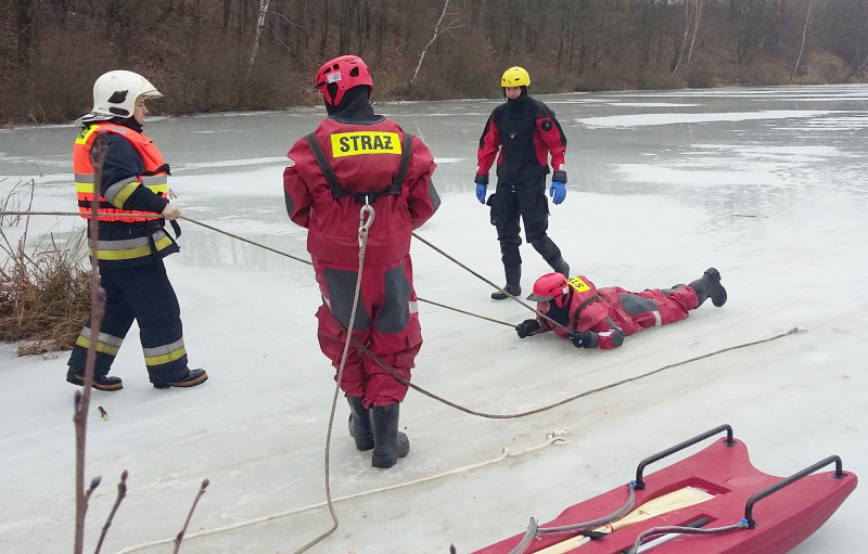 Podczas działań wykorzystano ubrania wypornościowe, sanie lodowe, drabiny oraz liny asekuracyjne, które mogą zostać wykorzystane podczas ratowania osób poszkodowanych w obrębie akwenów wodnych pokrytych lodem.