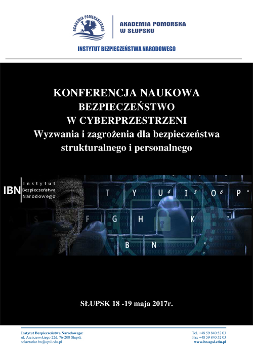 W dniach 18-19 maja br. w Akademii Pomorskiej odbędzie się Konferencja Naukowa nt. „Bezpieczeństwa w cyberprzestrzeni”, organizowana przez Instytut Bezpieczeństwa Narodowego Akademii Pomorskiej w Słupsku. Wydarzenie zostało objęte patronatem przez Starostę słupskiego Zdzisława Kołodziejskiego.