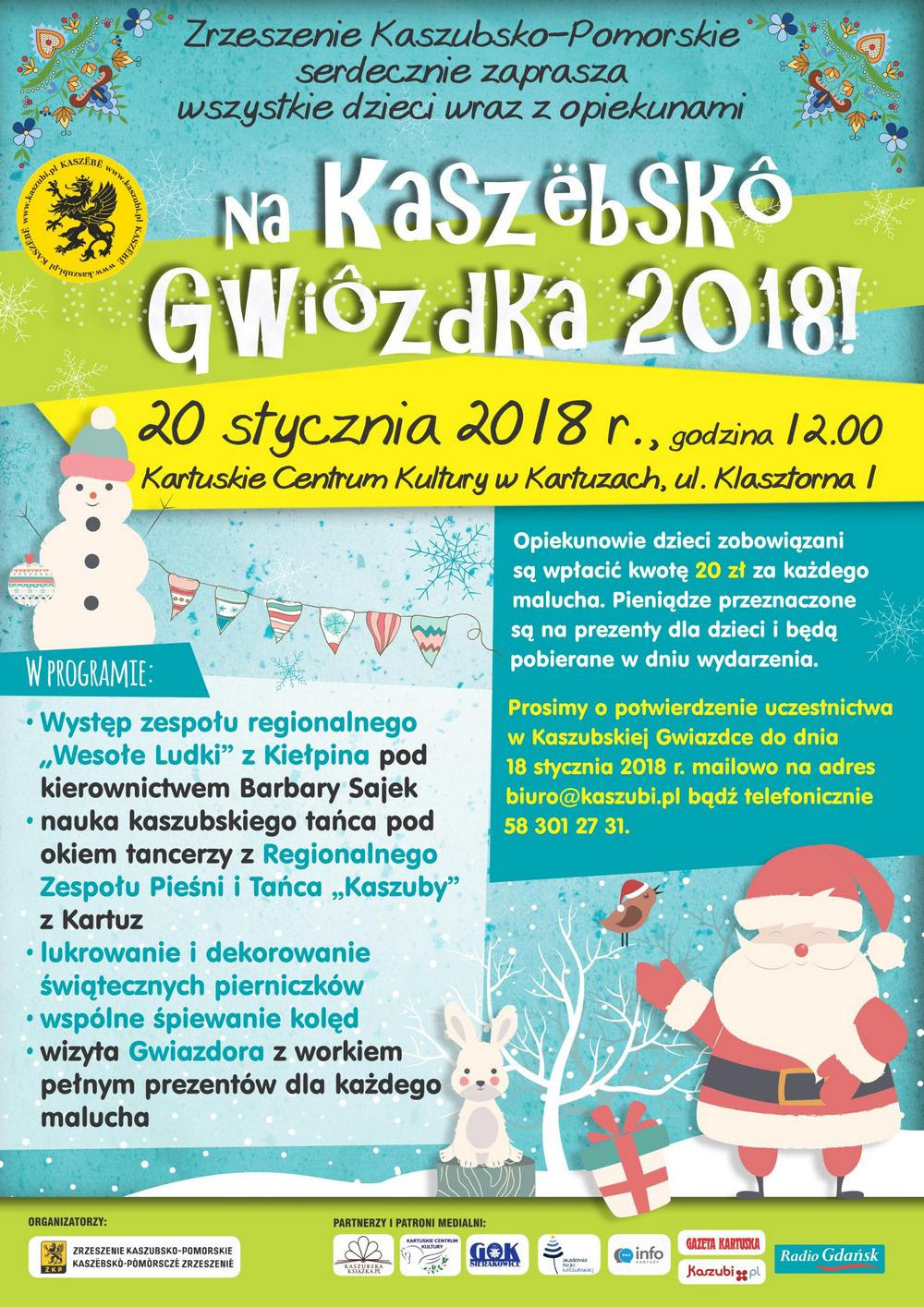 Zrzeszenie Kaszubsko – Pomorskie zaprasza wszystkie dzieci wraz z opiekunami na kaszubską gwiazdkę! Tegoroczna impreza dla najmłodszych odbędzie się 20 stycznia w Kartuzach.
